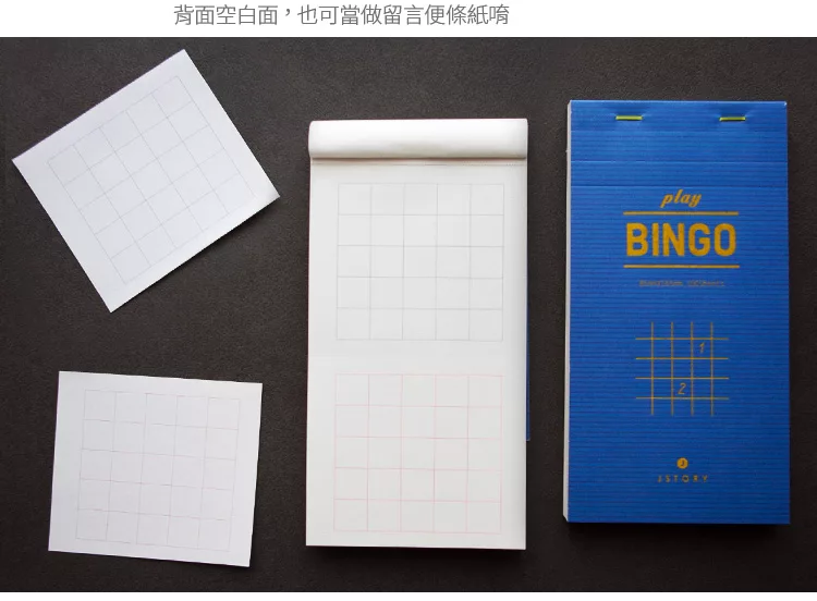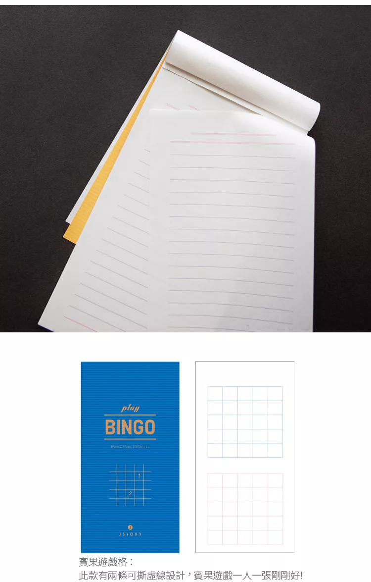 *藍-賓果遊戲格:此款有兩條可撕虛線設計,賓果遊戲一人一張剛剛好,背面空白面也可當做留言便條紙唷。
