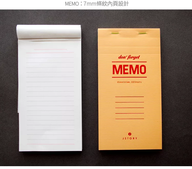 *黃-MEMO:7mm條紋內頁設計,最上方有可撕虛線設計,可當作留言memo紙條唷。